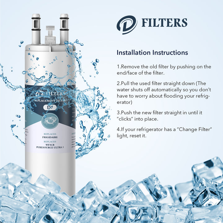 The Dfilters for Frigidaire PureSource3 Filter (WF3CB) is used in refrigerators by Frigidaire and others. The WF3CB filter creates better tasting water for drinking and making beverages as well as clean, clearer, healthy ice.