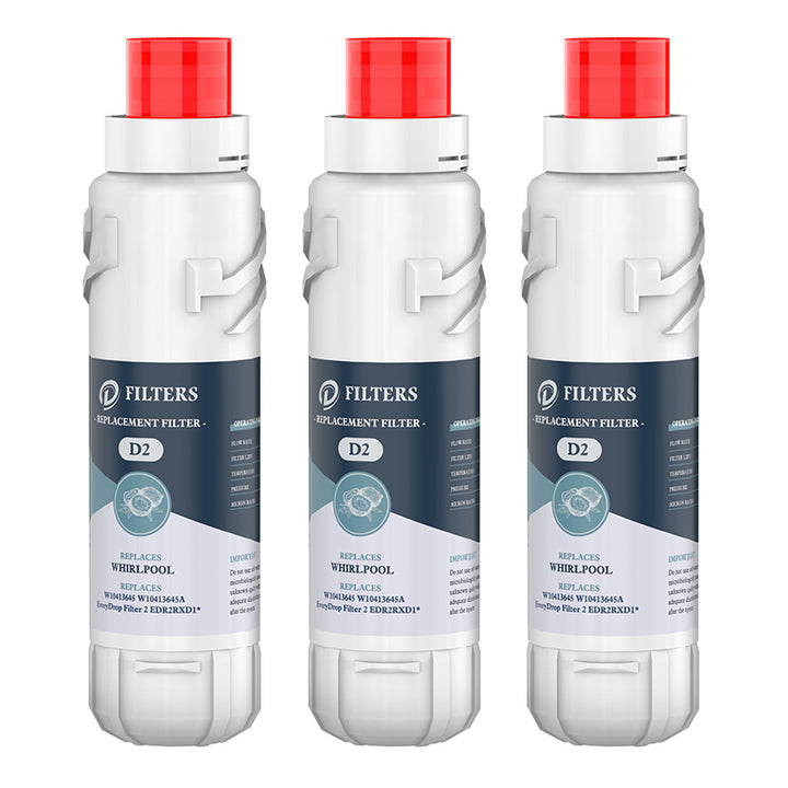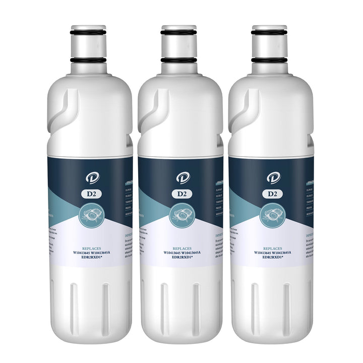This(D2) refrigerator water filter 1 could reduce 24 impurities in water as well as other harmful contaminants. The fridge filter is compatible with Everydrop Water Filter 2, W10413645A EDR2RXD1 Water Filter and 9082 Water Filter. We recommend to replace the filter every 6 months to ensure the filtration performance.