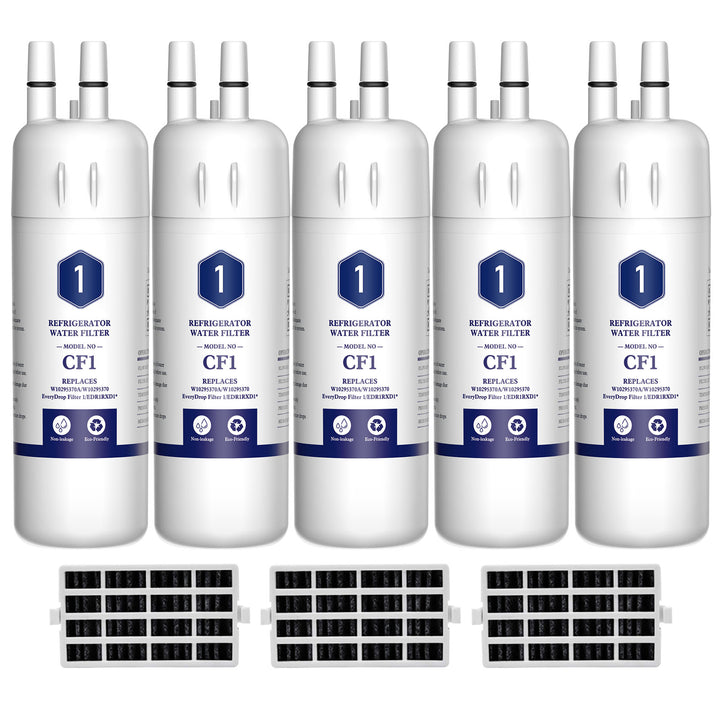 Drop Filter 1, W10295370A EDR1RXD1 Refrigerator Water Filter with Air Filter 5pk